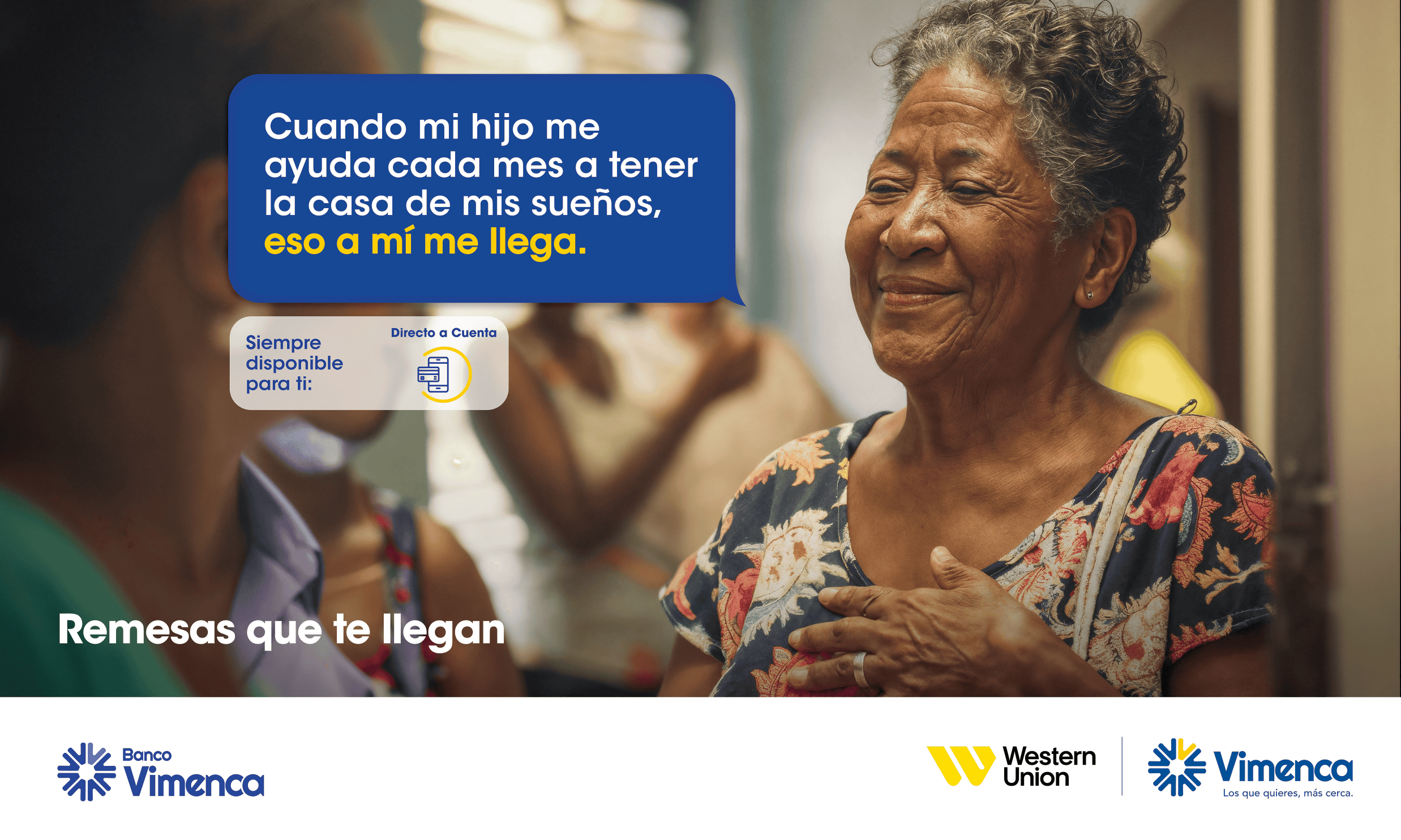 Remesas que te llegan, es una campaña de comunicación institucional de la marca Remesas Vimenca que apela a las emociones, destacando el verdadero valor de recibir una remesa: seguir siendo ese puente que conecta a los dominicanos con su suelo, manteniendo viva la unión y el orgullo de nuestras raíces.